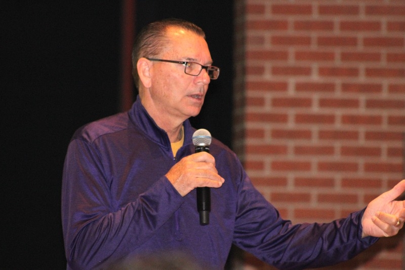 Motivational speaker Mark Potter spoke to students at Hoxie JH/HS about his personal struggle with depression and inspired and empowered students to speak up and find hope for recovery. Mark Potter was a successful head basketball coach at Newman University for 30 years and has spent the last few years bringing awareness to mental health through his organization, d2up.
